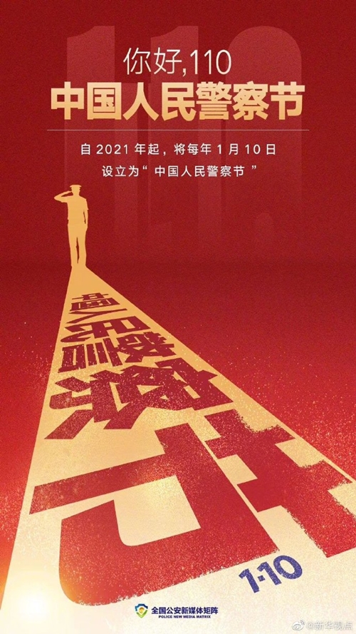 記者從公安部獲悉,近日,經(jīng)黨中央批準、國務院批復,自2021年起,將每年1月10日設立為“中國人民警察節(jié)”。這是在國家層面專門為人民警察隊伍設立的節(jié)日。