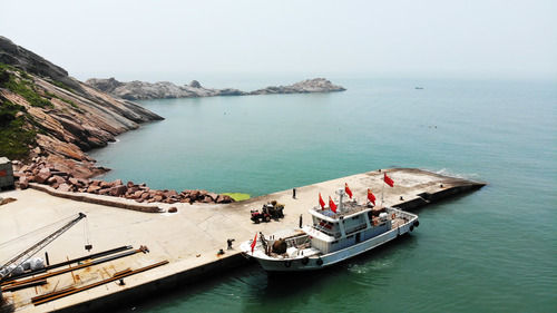 7月16日,“擁軍船”在蘇山島停靠(無人機(jī)照片)。新華社記者 王凱 攝