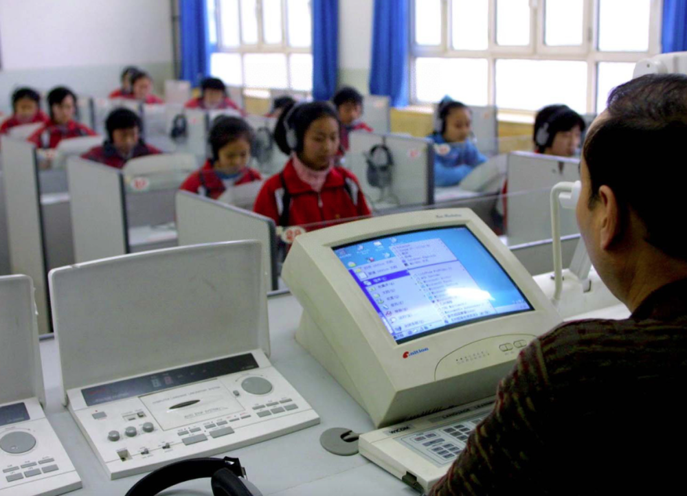 2003年2月17日,開(kāi)學(xué)第一天,被新疆維吾爾自治區(qū)定為“百所現(xiàn)代遠(yuǎn)程教育試點(diǎn)學(xué)校”的昌吉市第一中學(xué)初三(1)班同學(xué)們?cè)诙嗝襟w語(yǔ)音室學(xué)習(xí)英語(yǔ)