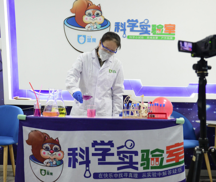 2月16日,呼和浩特市玉泉區青少年宮的老師通過線上課堂做測試酸堿度小實驗
