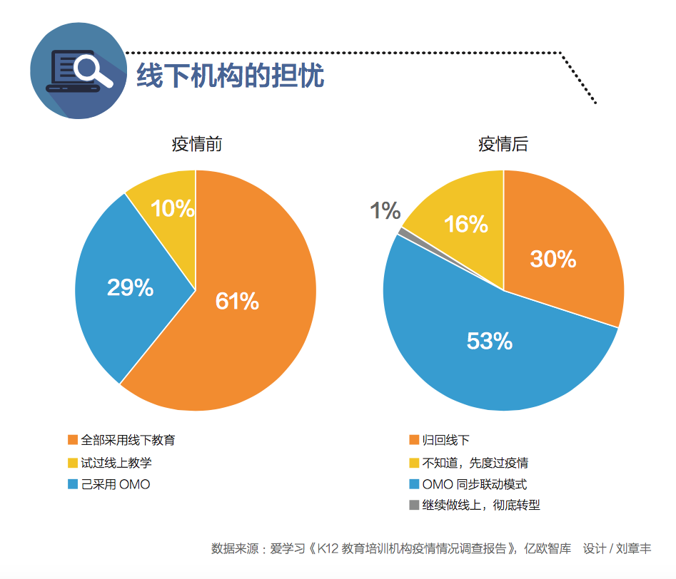 這是一場洗牌,也是一次危機轉換的當口。線下教培機構復工難,且面臨著用戶退費的風險,淘汰潮可謂洶涌。同時,眾多線下機構開始轉型到線上教育行業,但是競爭力不如行業頭部企業,如何發揮線下優勢,危機中尋求機遇?許多企業選擇了OMO模式(線上和線下的融合)。