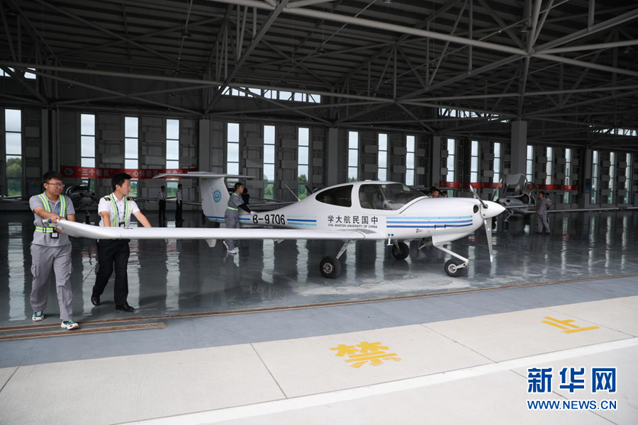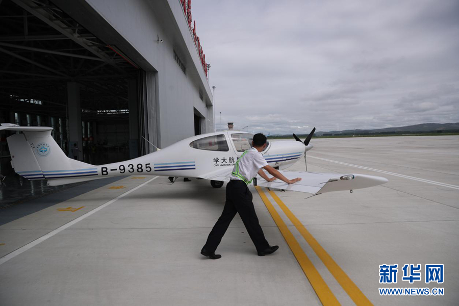 圖為訓(xùn)練飛行前飛行學(xué)員將訓(xùn)練機(jī)推出機(jī)庫(kù)。新華網(wǎng)記者焦鵬 攝