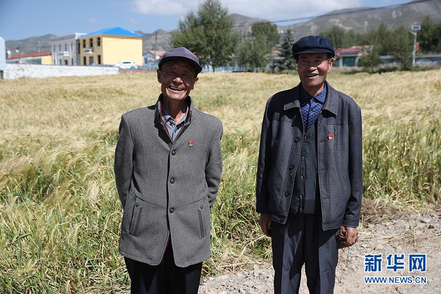 東達村黨員徐國才(左一)、楊發財接受記者采訪,他們也是東達村的致富能人。新華網記者焦鵬攝