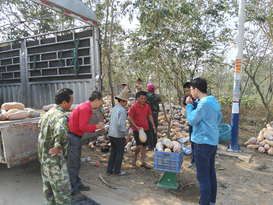 許多貧困戶還記憶猶新,2017年樂(lè)妹村的南瓜滯銷,3毛錢1斤還無(wú)人問(wèn)津,大家心急如焚。王聯(lián)春得知情況后馬上聯(lián)系海南大學(xué),以每斤1元的價(jià)格收購(gòu)了樂(lè)妹村的9萬(wàn)多斤南瓜。村民把南瓜用拖拉機(jī)一車一車地拉到村口,王聯(lián)春則在村口指揮稱重和運(yùn)輸。