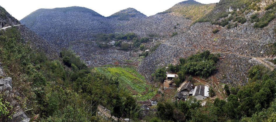 西疇縣是全省乃至全國石漠化最嚴重的地區(qū)之一,99.9%的面積屬于山區(qū),石漠化面積占75.4%,生存發(fā)展環(huán)境極為惡劣。圖為1991年被石漠化包圍的村莊——西灑鎮(zhèn)么灑村委會大鄔麻村小組。(呂德仁攝)??