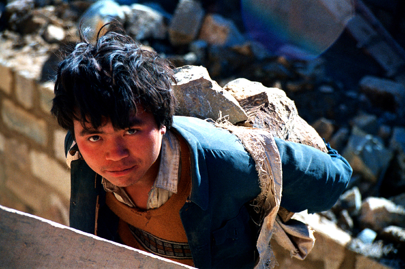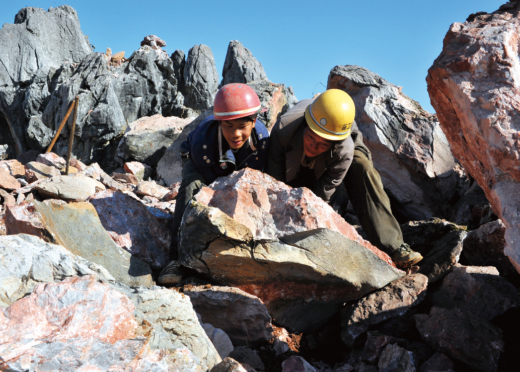 面對惡劣的生存環(huán)境,西疇人民“地瘦要壘埂,人窮要發(fā)狠”,用鏨子一點一點鑿,用大錘一錘一錘敲,用雙手一處一處刨,建成了“保水、保土、保肥”的三保臺地。圖為2010年蚌谷鄉(xiāng)長箐片區(qū)群眾正在實施土地整治。(呂德仁攝)