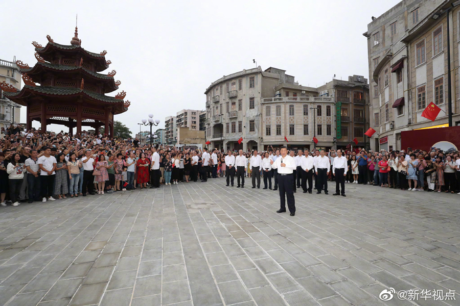 在廣東省汕頭市考察的習近平總書記步行察看開埠區街區人文歷史風貌,同熱情圍攏過來的市民群眾親切交流。習近平強調,我此行到廣東考察,就是進一步向國內外宣示,中國共產黨領導中國人民將繼續堅定不移走改革開放的道路,奮發有為推進社會主義現代化強國建設,鍥而不舍努力實現中華民族偉大復興的中國夢。父老鄉親們,讓我們攜手努力,共同奮斗!(文字記者:張曉松、朱基釵 攝影記者:鞠鵬、王曄)