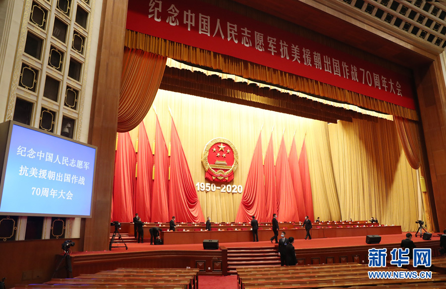 ??? 10月23日,紀(jì)念中國(guó)人民志愿軍抗美援朝出國(guó)作戰(zhàn)70周年大會(huì)在北京人民大會(huì)堂隆重舉行。圖為人民大會(huì)堂大禮堂。(新華網(wǎng) 翟子赫 攝)
