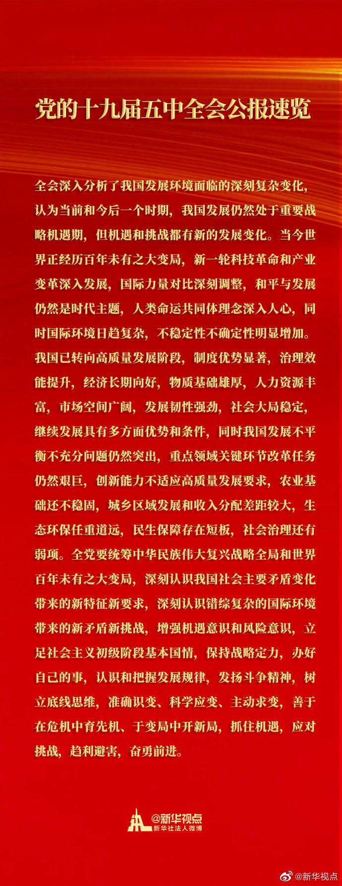 黨的十九屆五中全會公報速覽 | 全會提出了到二〇三五年基本實現社會主義現代化遠景目標
