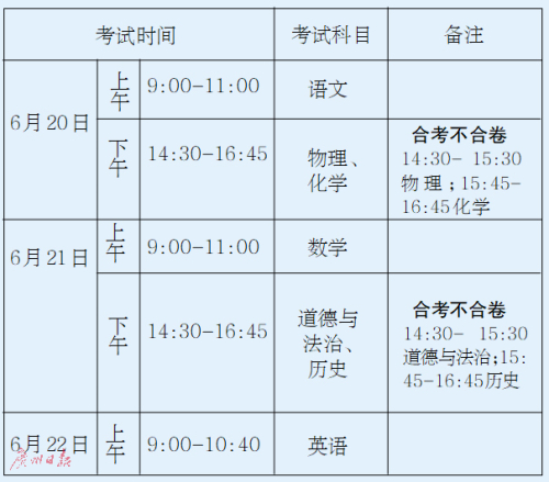 2021年至2023年廣州市初中學(xué)業(yè)水平考試錄取計分科目考試安排在每年的6月20日至22日進行。錄取計分科目采用“4+4”模式,新增歷史科考試,分值為90分,體育分值提升至70分。語、數(shù)、英各科分值調(diào)整為120分。道德與法治分值調(diào)整為90分。物理和化學(xué)分值不變,各100分。