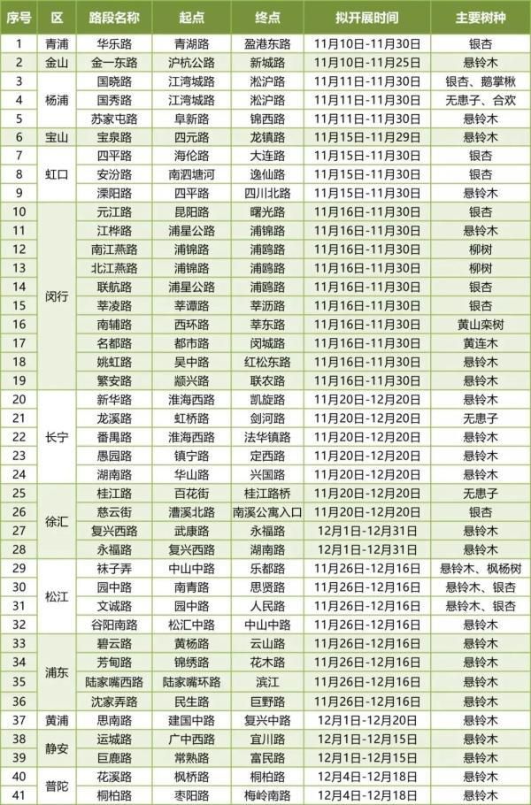 11月10日,上海市公布了2020年城市落葉景觀道路一覽表,13個區、41條道路將陸續開啟“落葉不掃”模式,上海市民又能選擇在不同的道路上欣賞到落葉美景了。