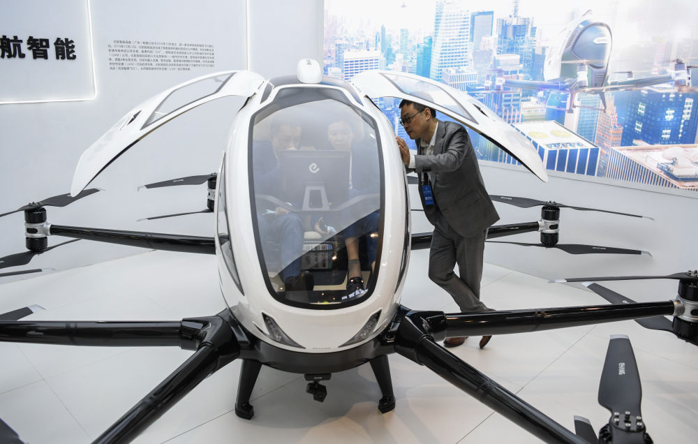 11月19日至21日,2020中國5G+工業互聯網大會在位于武漢的中國光谷科技會展中心舉行,大會特色活動“5G+工業互聯網成果展”同步舉行。圖為11月19日,參觀者了解一臺自動駕駛飛行器。新華社記者 程敏 攝