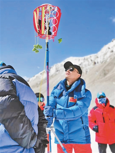 自然資源部第一大地測量隊隊長李國鵬介紹,此次珠峰高程測量實現了多個首次,“我們從日喀則國家一等水準點向珠峰腳下布測了數條水準線路,首次將我國國家高程基準傳遞至中國與尼泊爾邊界,人類還首次實現了實測珠峰峰頂重力值,航空重力測量連片測量了人類無法涉足區域的重力值。”