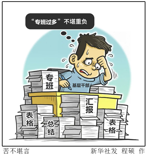 “一些專班還要求參與單位明確具體參與人員是誰,各自分工是什么。看起來井井有條,實際工作卻是為了應(yīng)付有關(guān)要求而準(zhǔn)備各種書面材料,從‘紙上來’到‘紙上去’,沒有推動實際工作,但增加了工作負(fù)擔(dān)。”中部某縣一名副局長直言。
