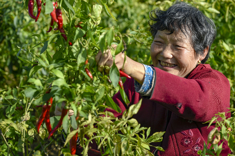 ????2018年拍攝于陜西興平桑鎮(zhèn)永流村,農民采摘辣椒,辣椒喜獲豐收,農民露出喜悅的笑容。(組照1)張綺云 攝