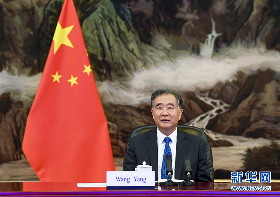 12月16日,全國政協主席汪洋在北京以視頻方式會見巴基斯坦參議院主席桑吉拉尼。新華社記者 高潔 攝