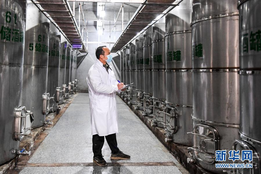 廣西羅城仫佬族自治縣東門鎮沖洞村村民莫樸在莫宏燈的葡萄酒廠內登記數據(12月16日攝)。新華社記者 曹祎銘 攝