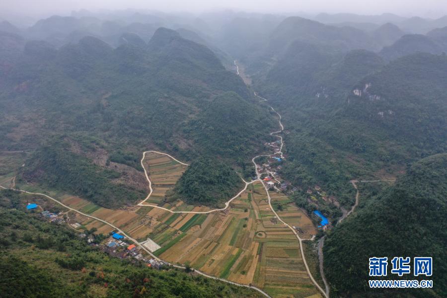 廣西羅城仫佬族自治縣四把鎮的山區路網(12月15日攝,無人機照片)。新華社記者 曹祎銘 攝