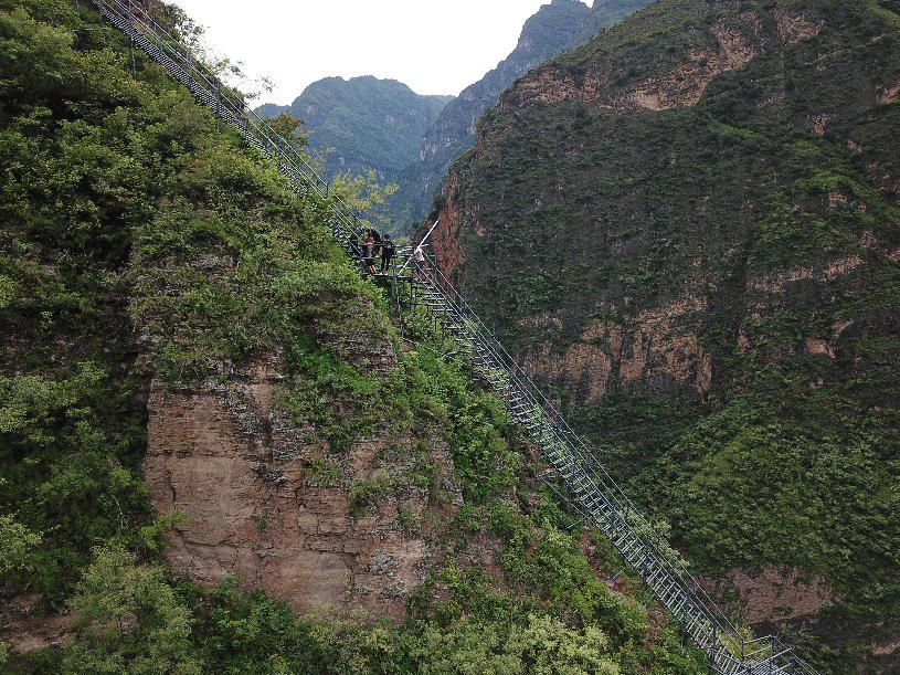 ????2017年9月初,四川涼山“懸崖村”村民背貨物通過天梯上山,中途休息。四川省涼山州昭覺縣支爾莫鄉阿土列爾村,坐落于海拔約1600米的山坳中,從山底到山頂村莊海拔高差近1000米,村民往返村子都需要借助懸崖峭壁間的天梯,從而被稱為“懸崖村”。為緩解村民出行險的問題,當地投入120噸鋼材、共6000根鋼管修筑了2556級“鋼管天梯”,工程于2017年6月底徹底完工,如今,“鋼管天梯”已經取代了之前更危險的藤梯,成為村民通往外界唯一的道路。 張浪攝