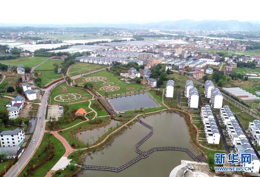 這是江西省興國縣一個鄉村旅游示范點(2019年4月1日攝,無人機照片)。新華社發(陳鵬 攝)