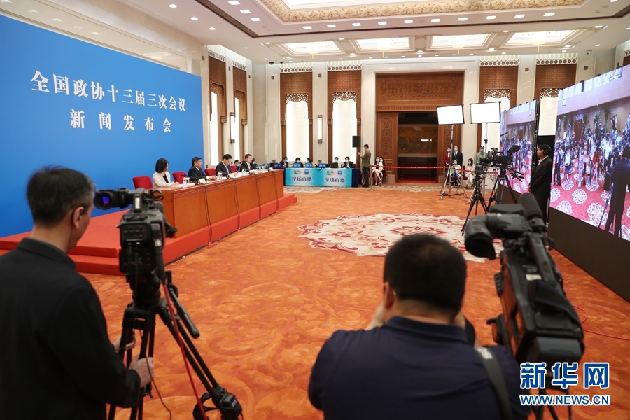 5月20日,全國(guó)政協(xié)十三屆三次會(huì)議新聞發(fā)布會(huì)在北京舉行,大會(huì)新聞發(fā)言人郭衛(wèi)民介紹本次大會(huì)有關(guān)情況并回答中外記者提問。圖為人民大會(huì)堂新聞發(fā)布廳現(xiàn)場(chǎng)。新華網(wǎng) 王翰林 攝