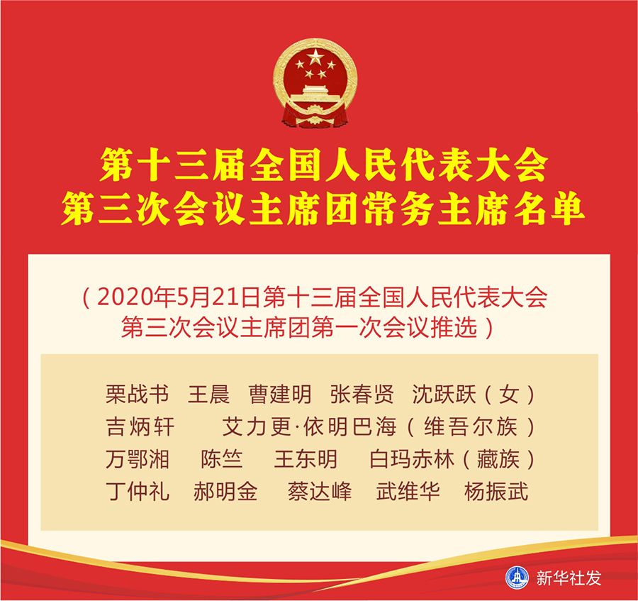 (2020年5月21日第十三屆全國(guó)人民代表大會(huì)第三次會(huì)議主席團(tuán)第一次會(huì)議推選)