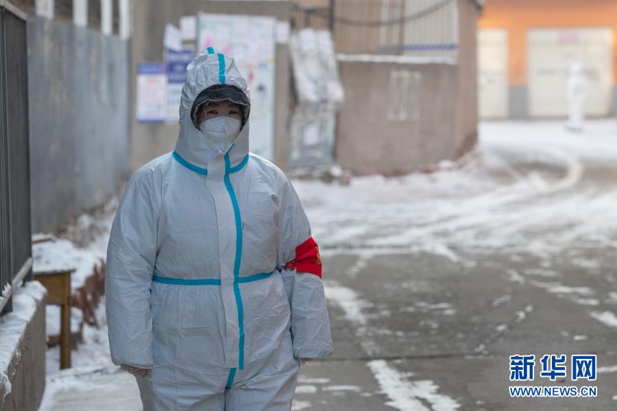 1月15日,志愿者在望奎縣前進街道佳興小區內巡邏。 新華社發(張濤 攝)