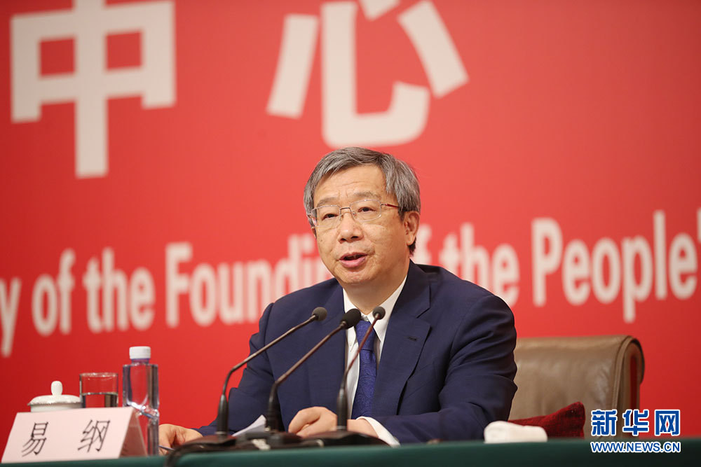 9月24日,慶祝中華人民共和國成立70周年活動新聞中心在北京梅地亞中心二層新聞發布廳舉辦第一場新聞發布會。圖為中國人民銀行行長易綱介紹相關情況。新華網記者 陳競超 攝
