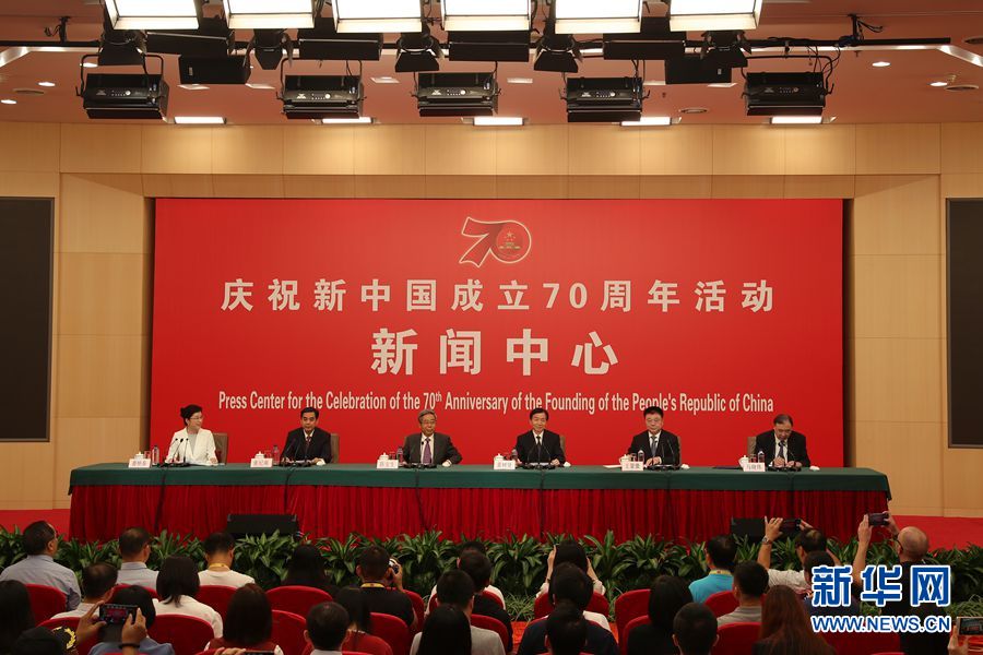 9月26日,慶祝中華人民共和國成立70周年活動新聞中心在北京梅地亞中心二層新聞發布廳舉辦第二場新聞發布會。圖為新聞發布會現場。新華網記者 郭小天 攝