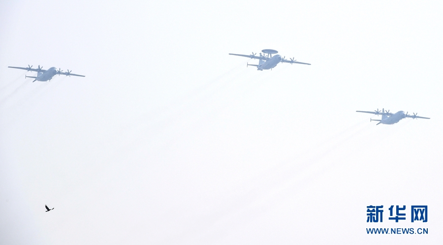 新華社北京10月1日電(黃書波、周正新)空警-500H預(yù)警機(jī)、空警-200H預(yù)警機(jī)、運(yùn)-8反潛巡邏機(jī)、運(yùn)-8技術(shù)偵察機(jī)組成的海上巡邏機(jī)梯隊(duì),1日上午飛過天安門廣場上空,作為海軍新型信息作戰(zhàn)力量的4型特種機(jī)首次集體亮相。