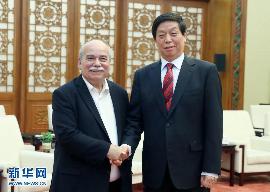 6月19日,全國人大常委會委員長栗戰書在北京人民大會堂會見希臘議長武齊斯。 新華社記者劉衛兵攝