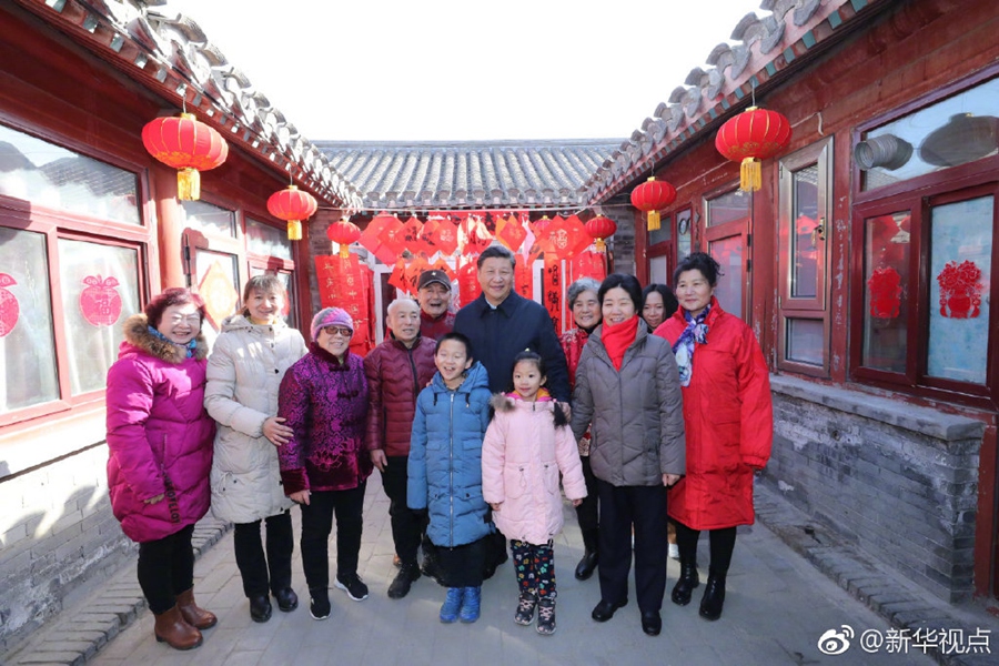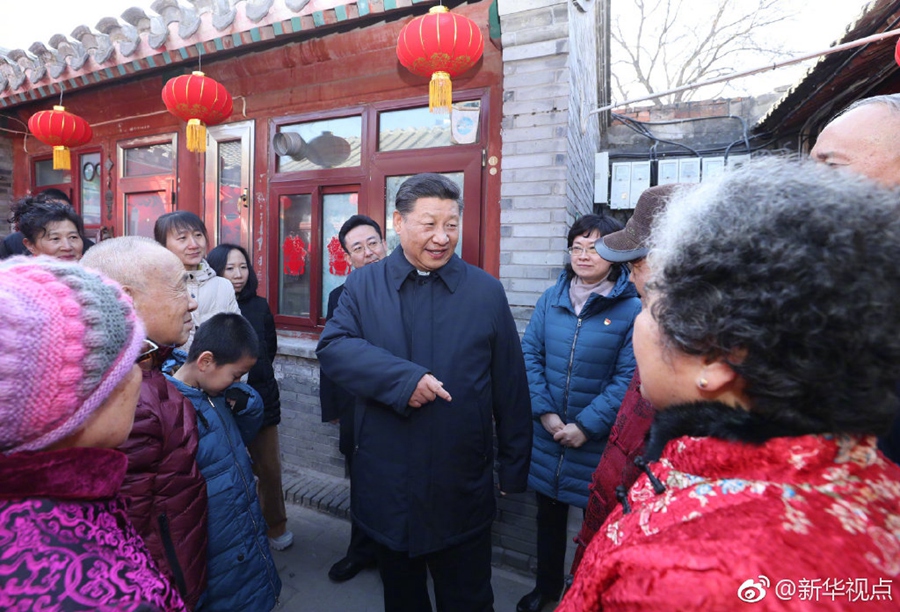 2月1日上午,習(xí)近平來(lái)到前門(mén)東區(qū),沿草廠四條胡同步行察看街巷風(fēng)貌,聽(tīng)取區(qū)域規(guī)劃建設(shè)、舊城保護(hù)整治、人居環(huán)境改善等情況介紹,先后走進(jìn)兩個(gè)四合院看望,同這里的居民一起包餃子、炸饹馇、貼“福”字、聊家常,仔細(xì)詢(xún)問(wèn)住房環(huán)境有沒(méi)有改善、年貨備齊沒(méi)有、生活還有什么困難,祝他們生活幸福、新春快樂(lè)。四合院里笑語(yǔ)歡聲,習(xí)近平對(duì)他們說(shuō),中國(guó)共產(chǎn)黨的追求就是讓老百姓生活越來(lái)越好。(記者張曉松、鞠鵬)