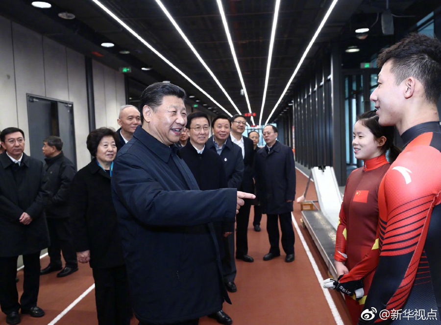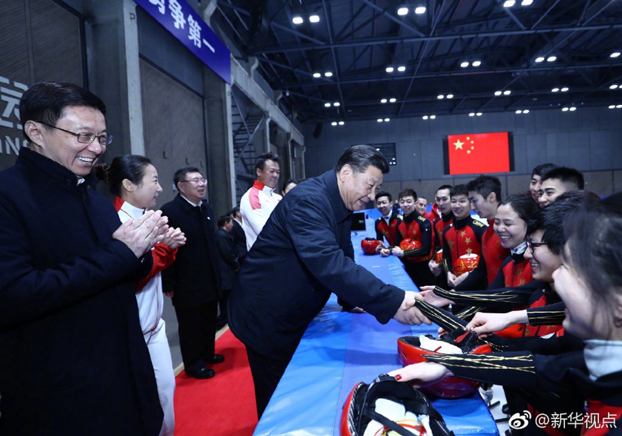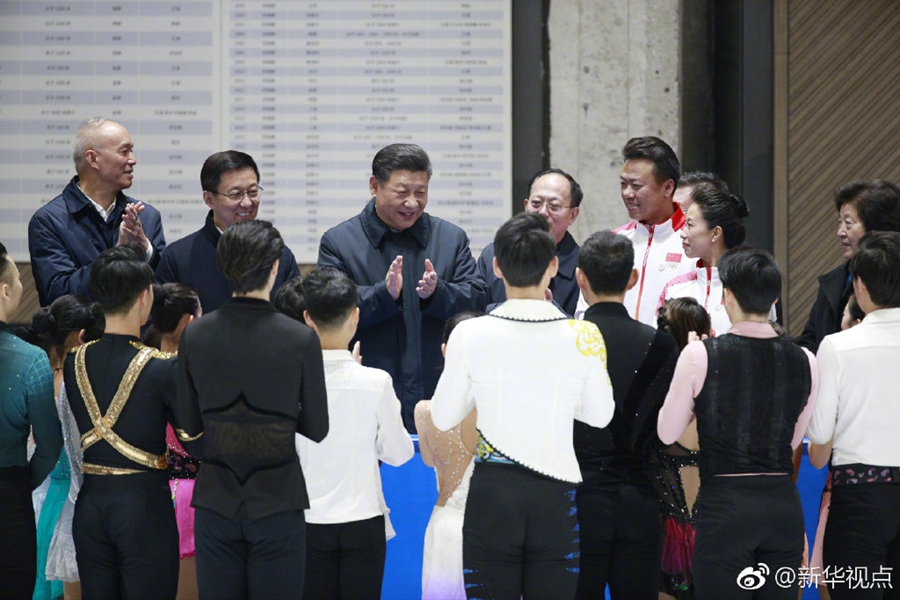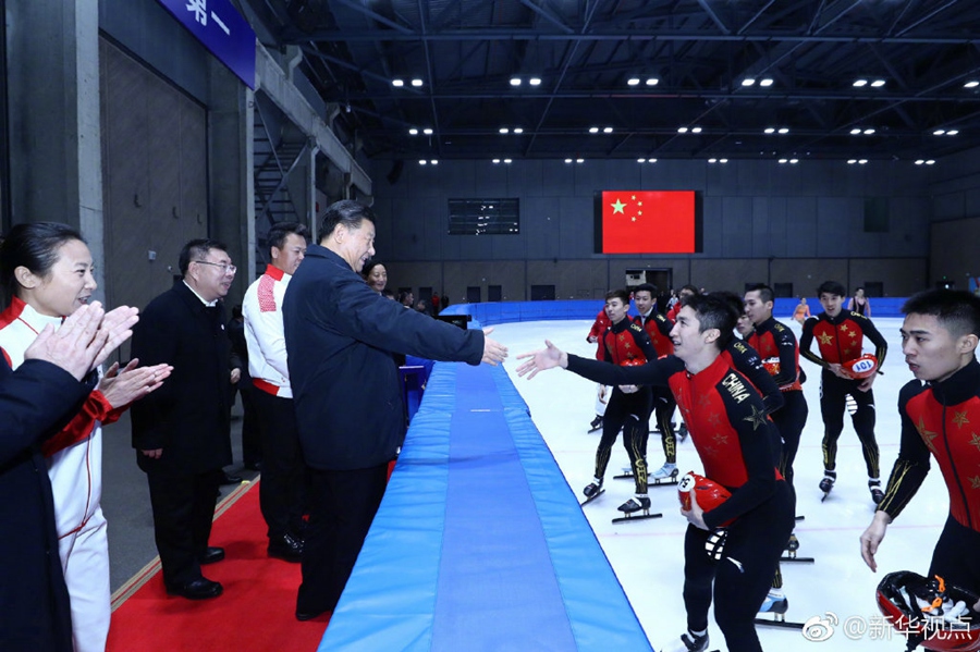 在位于北京石景山首鋼園區(qū)的國家冬季運(yùn)動(dòng)訓(xùn)練中心,習(xí)近平先后走進(jìn)速滑館和冰壺館,看望慰問備戰(zhàn)的運(yùn)動(dòng)員、教練員。“訓(xùn)練強(qiáng)度大不大?”“從事這項(xiàng)運(yùn)動(dòng)多長時(shí)間啦?”“生活上有哪些困難?”“國際上哪些競(jìng)爭(zhēng)對(duì)手最強(qiáng)?”總書記問得仔細(xì)。得知運(yùn)動(dòng)員們充滿信心,總書記十分欣慰。他勉勵(lì)大家說,舉辦北京冬奧會(huì)、冬殘奧會(huì),中國冰雪運(yùn)動(dòng)將會(huì)上一個(gè)大臺(tái)階。這是百年不遇的歷史機(jī)遇,會(huì)應(yīng)運(yùn)而生一批高水平優(yōu)秀運(yùn)動(dòng)員。習(xí)近平強(qiáng)調(diào),體育強(qiáng)則國家強(qiáng),國家強(qiáng)則體育強(qiáng)。通過北京冬奧會(huì)把我國冬季冰雪運(yùn)動(dòng)發(fā)展起來,這就是我們的希望。(記者張曉松、鞠鵬、謝環(huán)馳、劉彬)?
