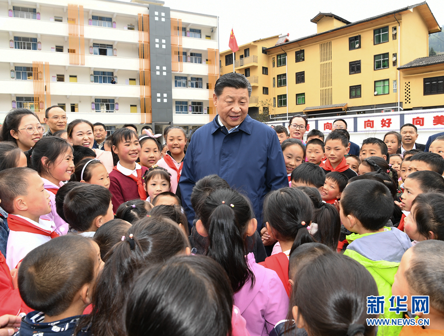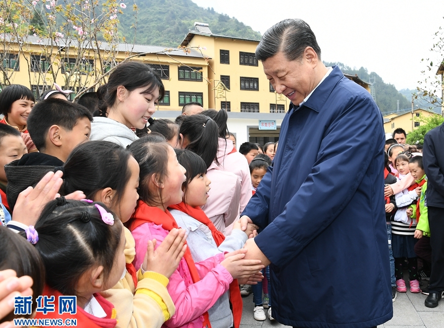 習近平首先來到中益鄉小學。學校操場上,小學生們正在開展課外文體活動。看到總書記來了,學生們圍攏過來,紛紛問習爺爺好,總書記高興地同大家交談,詢問他們學習和生活情況。中益鄉地處大山深山之中,群眾居住比較分散,孩子上學是個難題。習近平指出,“兩不愁三保障”,很重要的一條就是義務教育要有保障。再苦不能苦孩子,再窮不能窮教育。要保證貧困山區的孩子上學受教育,有一個幸??鞓返耐辍A暯阶哌M師生食堂,仔細察看餐廳、后廚,了解貧困學生餐費補貼和食品安全衛生情況。習近平囑咐學校和老師既要當好老師,又要當好臨時家長,把學生教好、管好。要把安全放在第一位,確保學生在學校學、住、吃都安全,讓家長們放心。他希望老師們扎根山區,獻身鄉村教育事業,為群眾脫貧貢獻一份力量。