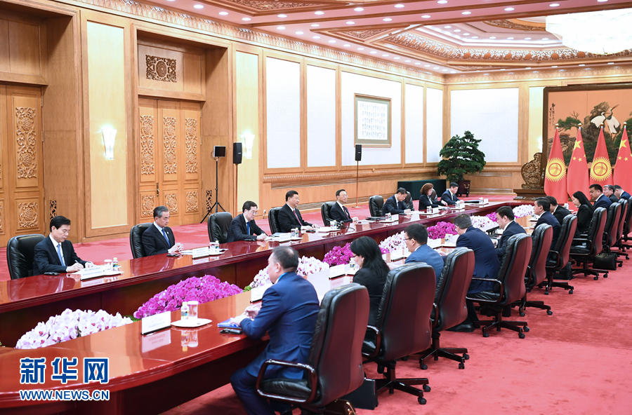 4月28日,國家主席習近平在北京人民大會堂會見吉爾吉斯斯坦總統熱恩別科夫。 新華社記者 謝環馳 攝