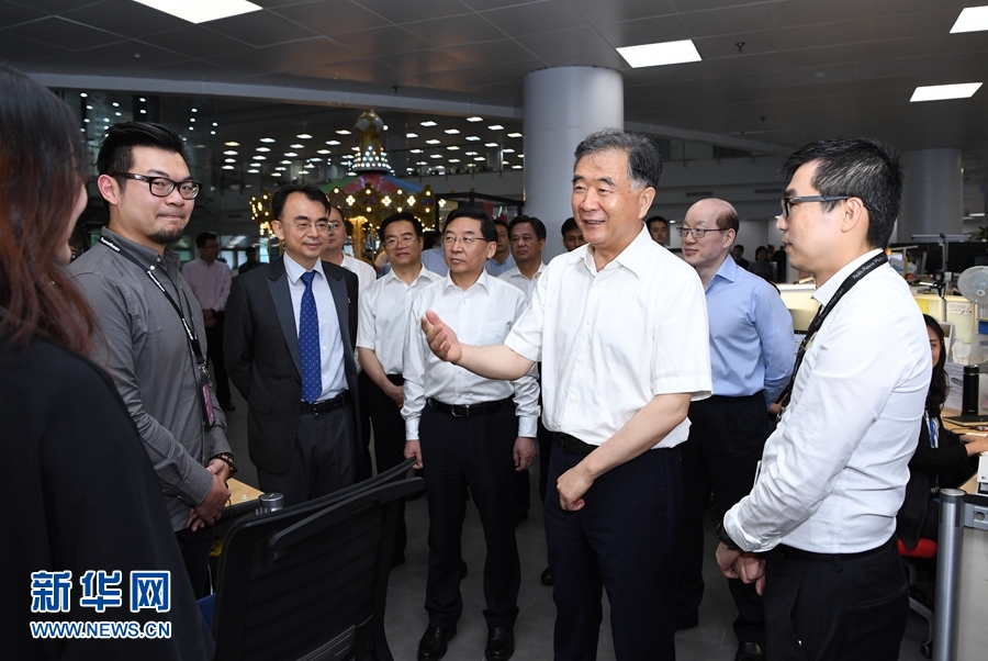 6月14日至16日,中共中央政治局常委、全國政協主席汪洋在出席第十一屆海峽論壇期間,深入閩江學院、網龍臺灣青年就業創業基地、廈門(集美)閩臺研學旅行基地、玉晶光電(廈門)有限公司調研,并與在大陸工作學習的臺灣青年代表座談。這是6月14日汪洋在福州網龍臺灣青年就業創業基地調研。 新華社記者 饒愛民 攝