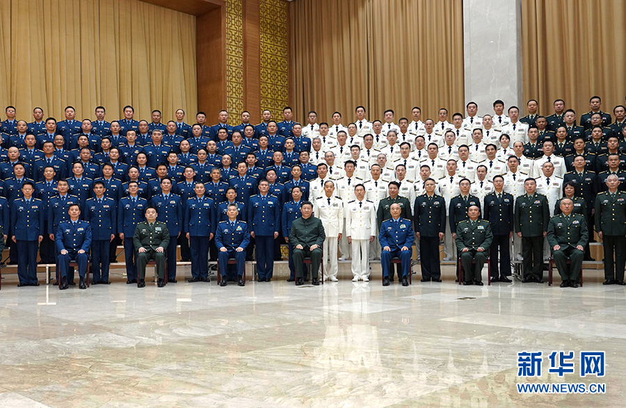 10月18日上午,中共中央總書(shū)記、國(guó)家主席、中央軍委主席習(xí)近平在武漢分別接見(jiàn)了聯(lián)勤保障部隊(duì)第一次黨代表大會(huì)全體代表、駐湖北部隊(duì)副師職以上領(lǐng)導(dǎo)干部和團(tuán)級(jí)單位主官。這是習(xí)近平親切接見(jiàn)聯(lián)勤保障部隊(duì)第一次黨代會(huì)全體代表。 新華社記者 李剛 攝