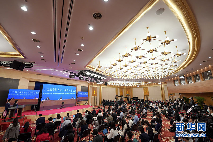 5月28日下午,十三屆全國(guó)人大三次會(huì)議在北京人民大會(huì)堂舉行記者會(huì),國(guó)務(wù)院總理李克強(qiáng)應(yīng)大會(huì)發(fā)言人張業(yè)遂的邀請(qǐng)出席記者會(huì),并回答中外記者提問。這是記者在梅地亞中心多功能廳采訪。 新華社記者 金良快 攝