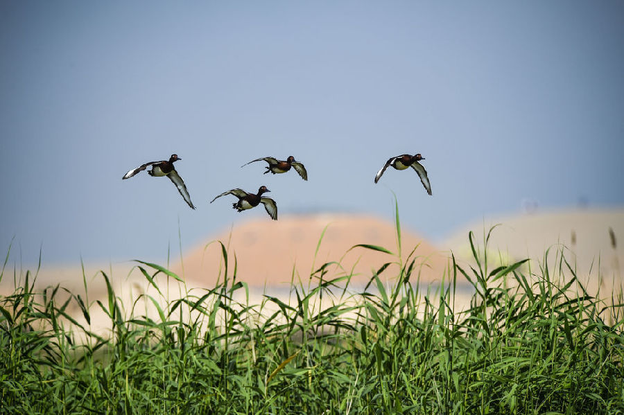 寧夏石嘴山市平羅縣沙湖景區(新華社記者馮開華 攝)