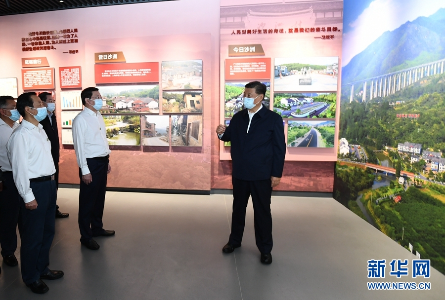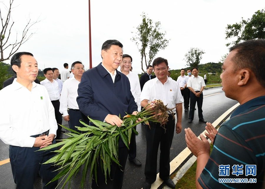 9月16日至18日,中共中央總書記、國家主席、中央軍委主席習近平在湖南考察。這是16日下午,習近平在郴州市汝城縣文明瑤族鄉沙洲瑤族村沙洲現代農旅示范基地,了解扶貧產業發展和增收情況。新華社記者 謝環馳 攝