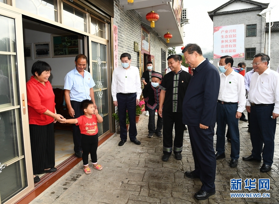 9月16日至18日,中共中央總書記、國家主席、中央軍委主席習近平在湖南考察。這是16日下午,習近平在郴州市汝城縣文明瑤族鄉沙洲瑤族村察看村容村貌,同村民親切交談。新華社記者 謝環馳 攝