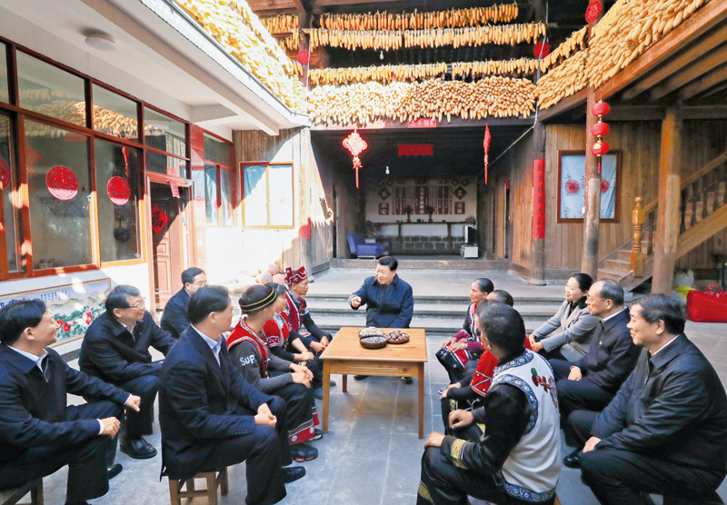 2020年1月19日至21日,中共中央總書記、國(guó)家主席、中央軍委主席習(xí)近平來到云南,看望慰問各族干部群眾,向全國(guó)人民致以新春祝福。這是19日下午,習(xí)近平在騰沖市清水鄉(xiāng)三家村中寨司莫拉佤族村,同村民李發(fā)順一家聊家常,詳細(xì)詢問脫貧情況。 新華社記者 鞠鵬/攝