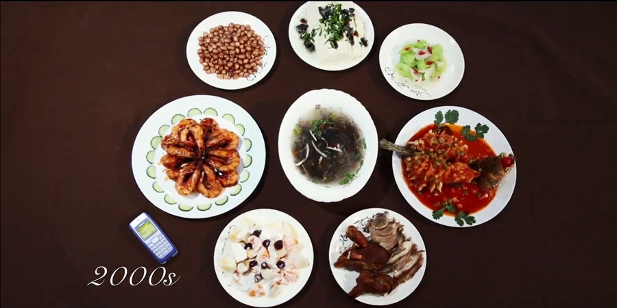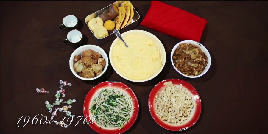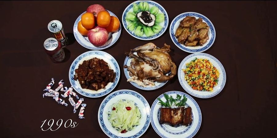 視頻名為《年夜飯的變遷》,生動(dòng)展現(xiàn)了改革開放40年來(lái)中國(guó)人年夜飯的變遷,從滿足溫飽到豐盛美味,再到追求營(yíng)養(yǎng)健康,折射出百姓生活水平的顯著提高。