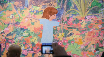 3月30日,人们在俄罗斯莫斯科达尔文博物馆参观中国绘画展。