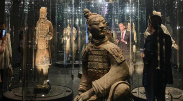 3月30日,人们在俄罗斯莫斯科达尔文博物馆参观中国画和绘画工具。