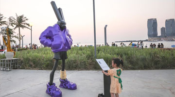 5月9日,参观者在展览现场观赏参展作品《ON》。
