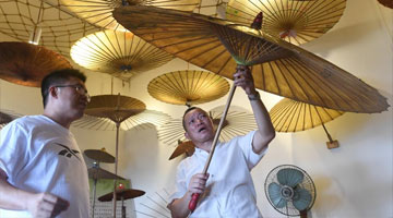 6月9日在“鄂尔多斯青铜器文物精品展”拍摄的展品“金凤冠”。