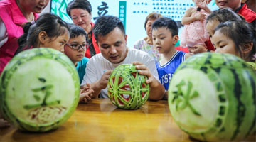 8月7日,游人在嵩阳书院内的“杏坛”参观。