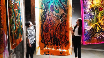8月7日,游人在嵩阳书院内参观“大唐嵩阳观纪圣德感应之颂碑”。