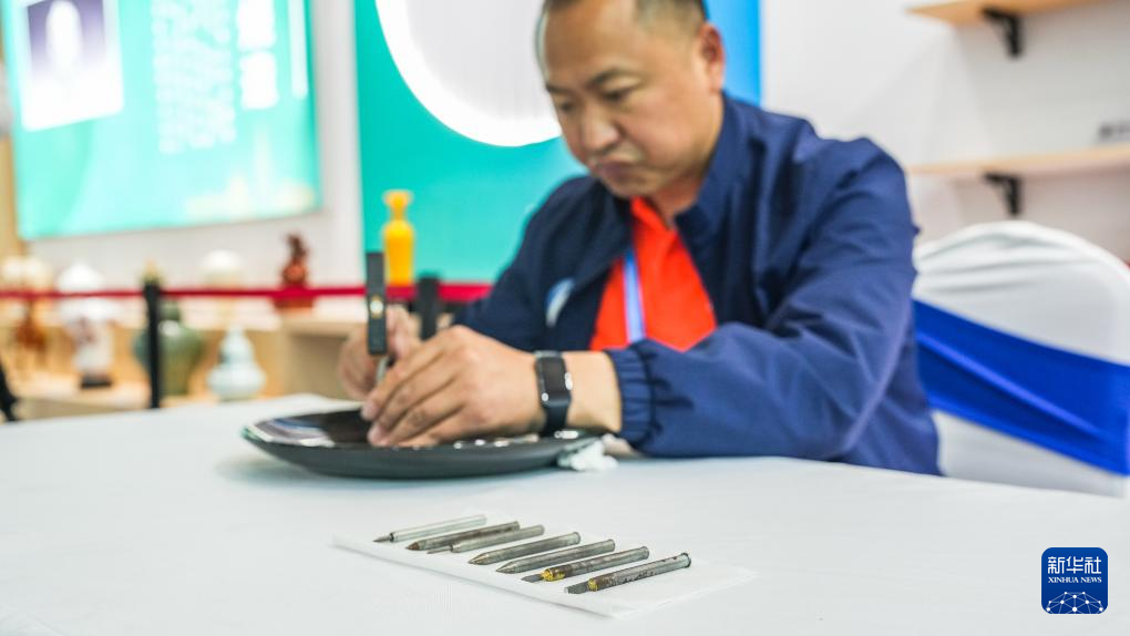 在贵阳举办的第二届全国乡村振兴职业技能大赛上,来自江苏省盐城市的乡村工匠名师陈银付带来了自己的大丰瓷刻作品,吸引了观众的目光。